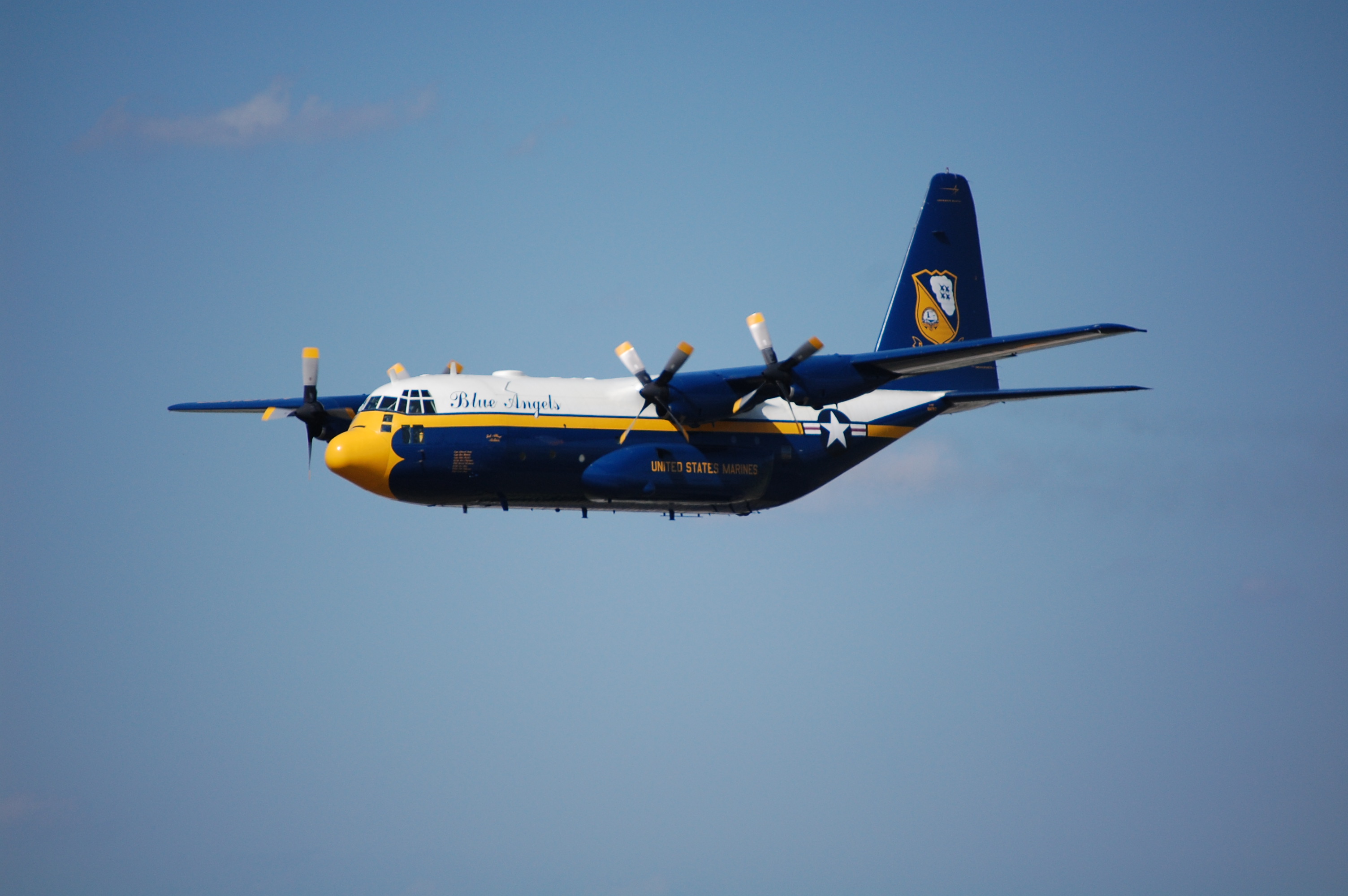 Fat Albert is the C-130 support plane for the Blue Angels, but it is also part of their air show routine. It demonstrates a maximum performance climb, high speed pass, and steep approach to a short field landing. For such a large airplane, the C-130 is very maneuverable and can land in an impressively short distance.